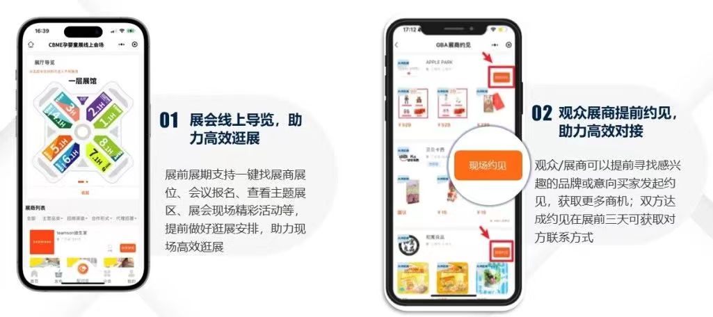 展前一個月上線CBME線上會場,呈現(xiàn)完整細分品類及品牌詳情,買家可提前通過CBME云采寶查展商、找產品、約見展商,查詢現(xiàn)場精彩活動等,提前規(guī)劃觀展行程,助力輕松高效逛展。